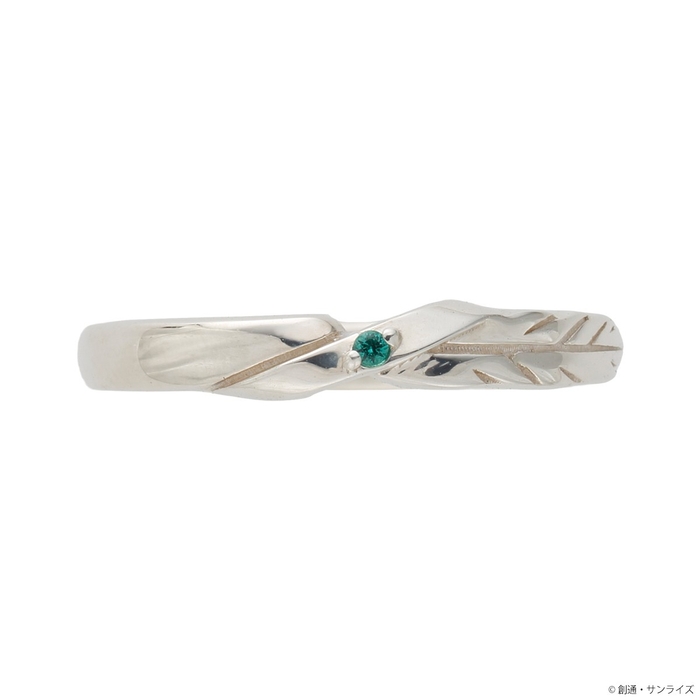 『新機動戦記ガンダムW』30周年をお祝いしたシルバーリングです。ヒイロ・ユイモデルは、すっきりとしたひねりのあるフォルムに、羽のモチーフを取り込んだデザイン。中央にはヒイロのタンクトップをイメージしたカラーのストーンをセットし、内側には名前の刻印を施しました。