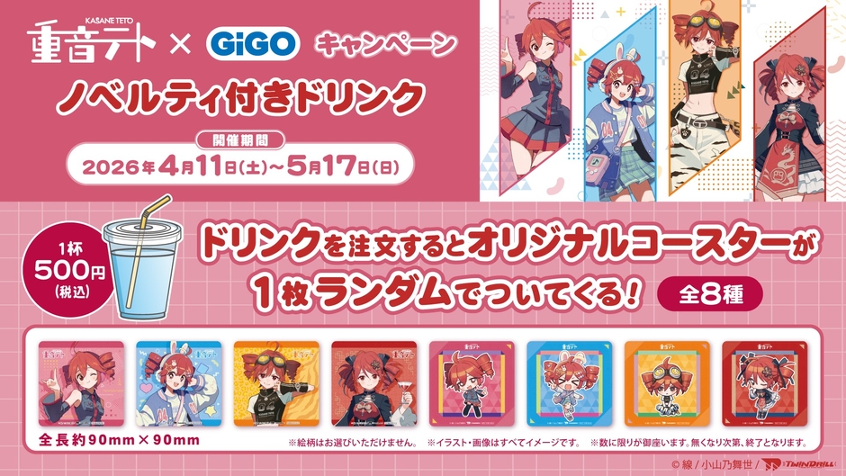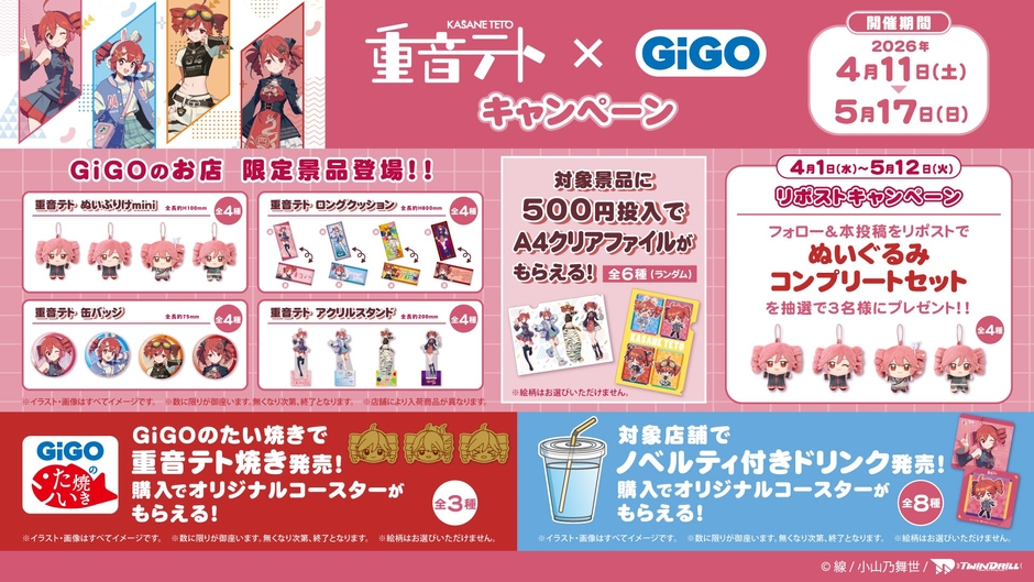株式会社GENDA GiGO Entertainment(本社:東京都港区 代表取締役社長:二宮 一浩、以下「当社」)はGiGOグループのお店において、2026年4月11日(土)より、クリプトン・フューチャー・メディア株式会社が手掛ける『重音テト』とコラボレーションした、「重音テト×GiGOキャンペーン」を開催いたします。