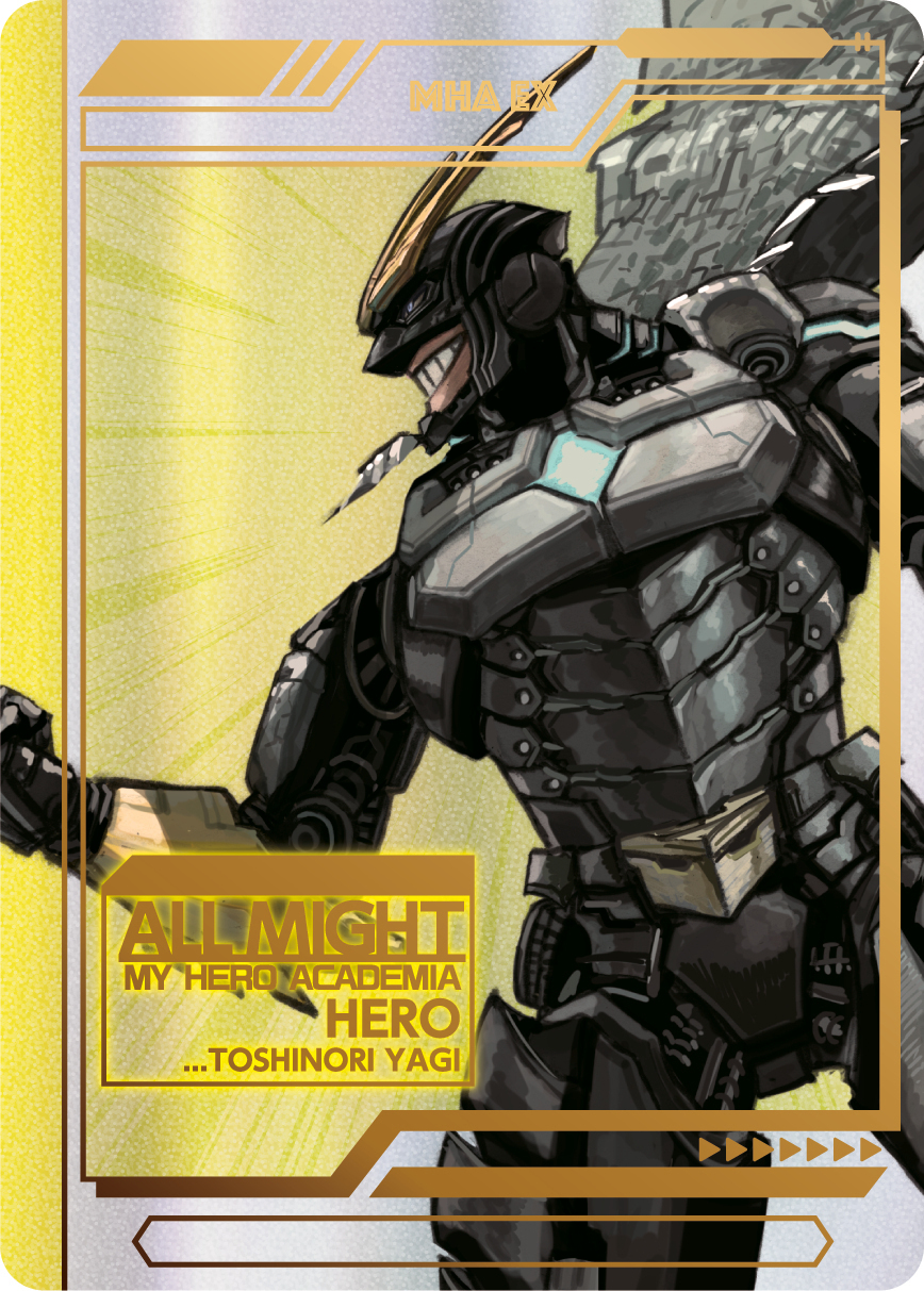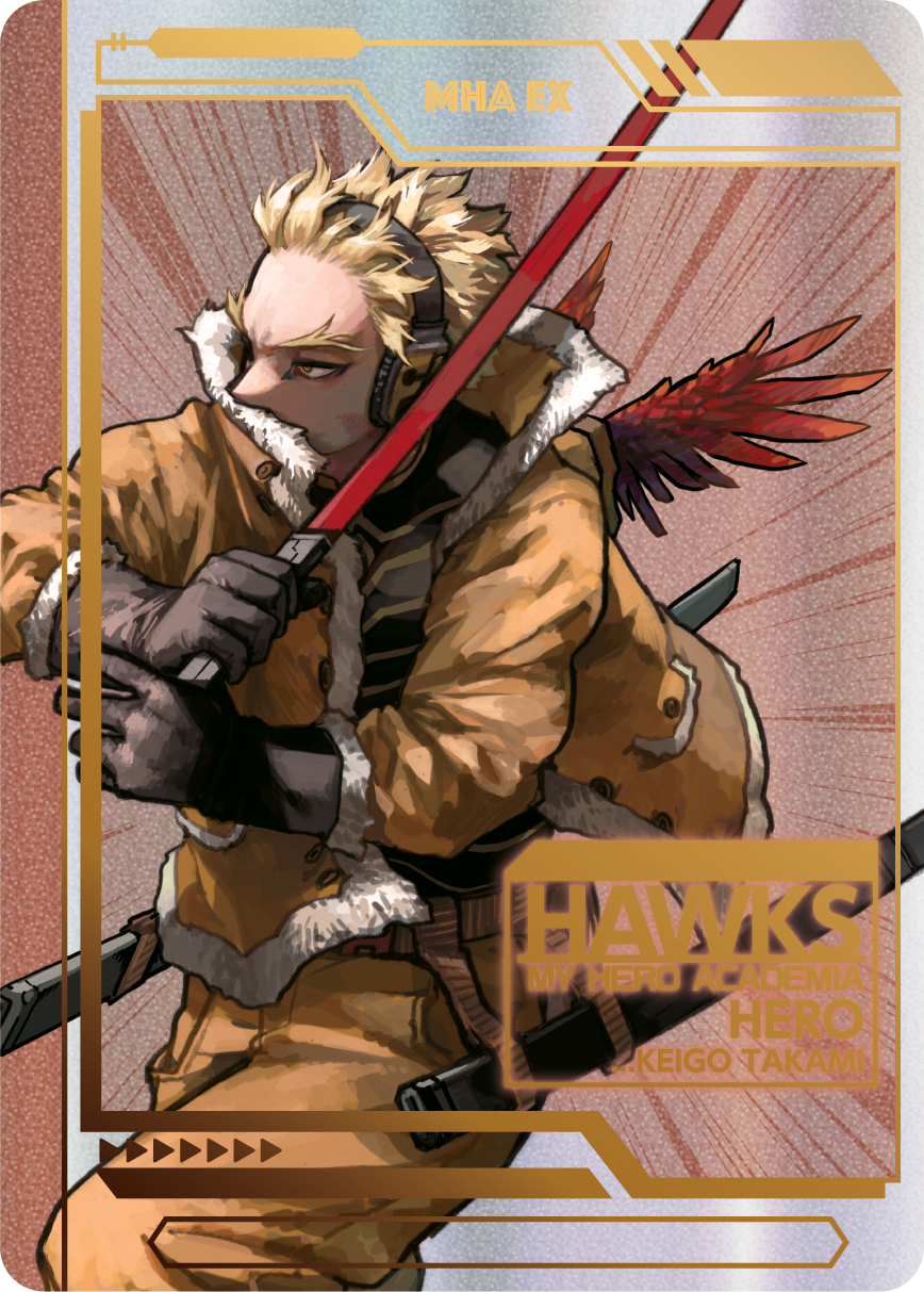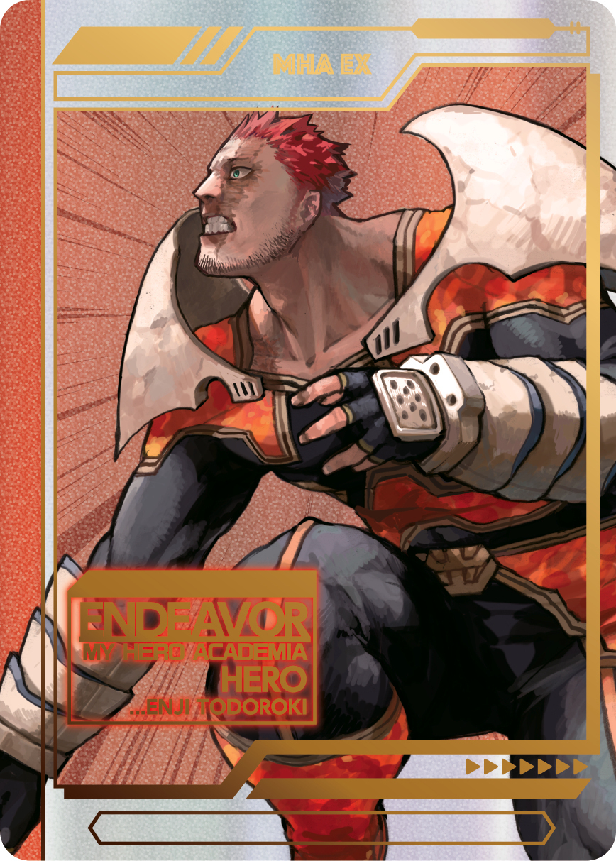 展覧会描きおろしキービジュアル[ヒーローVS敵(ヴィラン)]のイラストを使用した、豪華ホロ加工のコレクションカードセット。