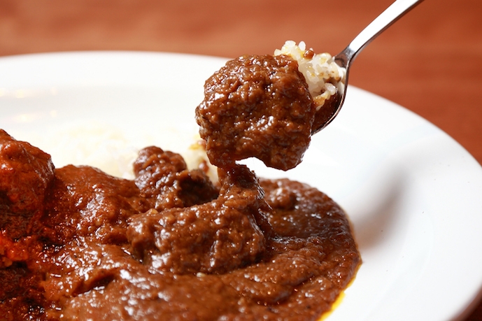 鶏ガラや牛骨と香味野菜から作られた2種類のオリジナルブイヨンと、フレンチ料理で使用する「ブラウンソース」を合わせて作った「Wブイヨンスープ」を使用し、丸々2日間煮込んでから提供する、濃厚で深みのある味が特徴のカレー。煮込んだ野菜の甘さの後には、風味豊かなスパイスが自然な辛さと共に香ります。地元の契約農家が手間暇かけて栽培する、寒暖差の大きい富士山特有の気候を耐え抜いた甘みの強い野菜を5種類以上使用し、富士の大地の恵みを存分に感じられるメニューです。