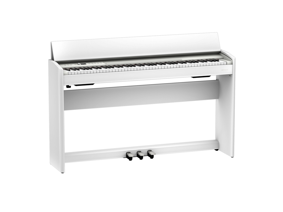 『F701』は、ローランドの家庭用デジタルピアノの中で最もコンパクトなサイズで、室内やインテリアに溶け込むスリムでスタイリッシュなデザインが特徴です。美しくやさしい音からダイナミックで迫力のある音まで、豊かな表現力を持つ「スーパーナチュラル・ピアノ音源」と、指先の繊細なタッチ・コントロールを可能にする「PHA-4スタンダード鍵盤」を搭載したこだわりの設計で、グランドピアノの弾き心地で、自然な演奏感を実現しています。さらに、Bluetooth(R)オーディオで接続したスマートフォンのお気に入りの曲を『F701』本体のスピーカーから再生することも可能。音楽を聴いて楽しんだり、ローランドのオリジナル・アプリ「Roland Piano App」を使って楽しくピアノのトレーニングをしたり、デジタルピアノならではの多彩な機能で、音楽と親しむ生活を楽しめます。