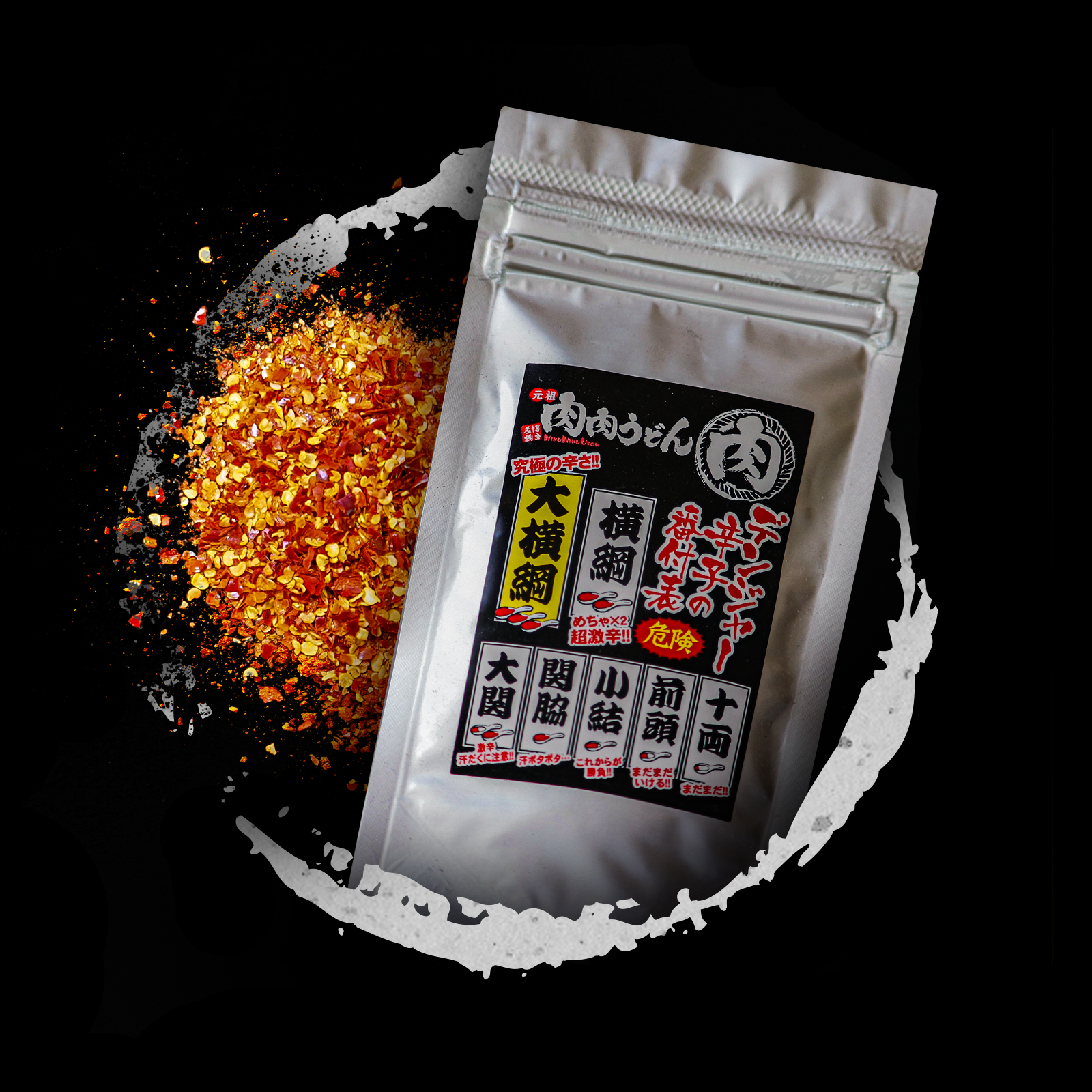 唐辛子も肉肉うどんの特長のひとつです。生姜に負けないパンチのある唐辛子を提供したいと厳選した激辛種入り唐辛子を取り寄せ、各店舗でミキシングしています。こうすることで風味を損なうことなく、唐辛子本来の風味を楽しめます。