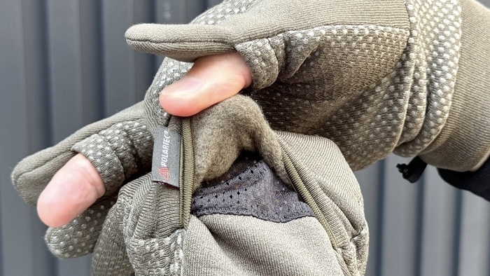指を出した時に生地がめくれ上がらずにフィットするので、甲側からの見た目は指先が露出しているとは思えないほど、グローブとして在るべき姿を保持します。