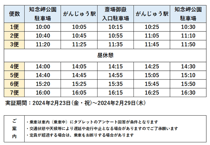 ■運行ダイヤ : 下表の時間帯に運行します。