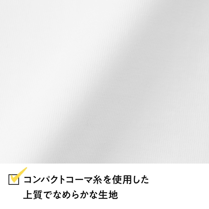 糸を紡ぐ際に毛羽が表側に出ないよう、内側に収束して紡ぐ「コンパクトコーマ糸」を使用した、上質でなめらかなさわり心地を実現したTシャツ。コンパクトコーマ糸は、通常のリング糸と比較すると各段に少ない毛羽立ちと丈夫さをもつ上質な糸なので、表面のなめらかさはプリントなどの二次加工にも最適。さらに、適度な厚みのある生地にこだわり、普遍的なサイズ感にすることで、ストリートはもちろんのこと、シックな装いや、ヨーロピアンカジュアルなスタイルなど、さまざまなスタイリングにアジャストします。