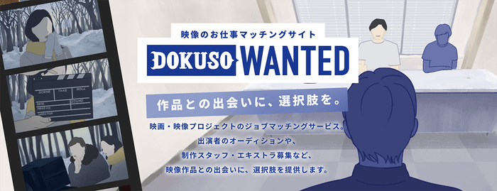 インディーズ映画に特化した見放題サービス「DOKUSO映画館(ドクソーエイガカン)」を提供する、株式会社DOKUSO映画館(本社:東京都豊島区、代表取締役:⽟井雄⼤)は、本日2月8日より、映画・映像プロジェクトのジョブマッチングサービス「DOKUSO WANTED(ドクソー・ウォンテッド)」を開始いたしました。