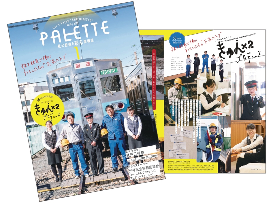 2022年1月号は、第50号記念として、普段、当誌の編集に関わらない部署の本社事務、運転士、駅務員、車両技術の有志従業員が集まり、「チームちちてつきゅん×2プロデュース」と題し、「訪れた時」「体験した時」「食べた時」に“きゅんきゅん”するような沿線スポットを取材、記事の書き起こしを行いました。