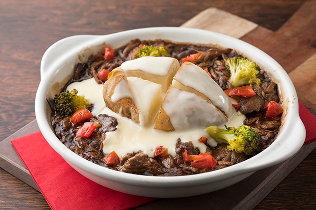 カナディアンロッキーポークと根菜の赤ワイン煮込み ローストポテトのラクレット仕立て