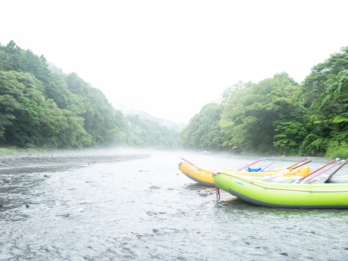 ラフティングボートを率いるのは、御岳渓谷でリバーアクティビティサービスを提供する「みたけレースラフティングクラブ」代表の柴田大吾さん。世界選手権2位の経歴を持つラフティングプランナーです。