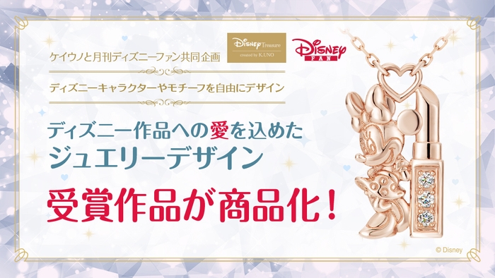全国にジュエリー店舗を展開するオーダーメイド企業の株式会社ケイ・ウノ(本社:愛知県名古屋市、代表取締役:伊藤 崇史)のジュエリーブランドケイウノは、月刊ディズニーファン(講談社刊)との共同企画「ディズニー作品への愛を込めたジュエリーデザイン大募集!」にて、優秀作品(グランプリを受賞したデザイン)のネックレスを商品化します。