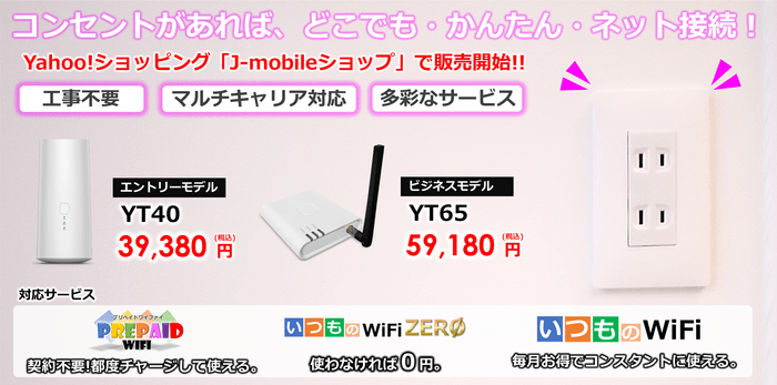 ジャパンモバイル株式会社(本社:札幌市中央区、代表取締役社長:賣場崇大、以下「J-mobile」)は、「Yahoo!ショッピングJ-mobileショップ」で、据置型モバイルWiFi 2機種『YT40』と『YT65』を2023年3月24日より販売開始します。