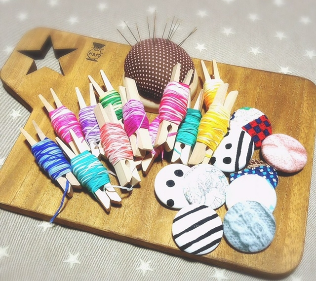 ●おくるみボタンワーク・・・・可愛い生地を使っておくるみボタンづくり。