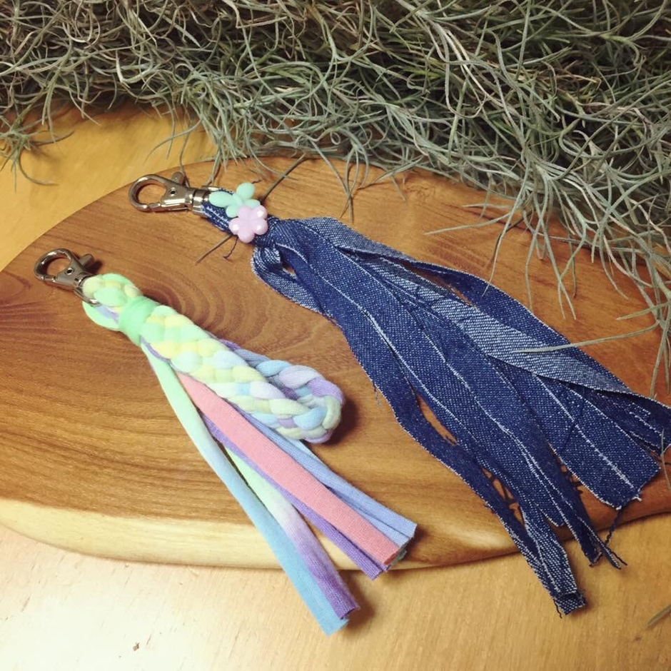 ●編み物ワーク・・・・・・・・Tシャツヤーンでタッセルチャームづくり。
