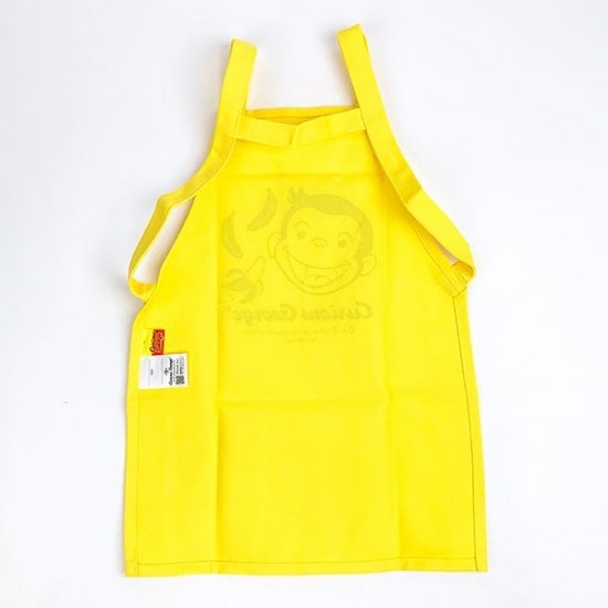 まずは、キッズエプロンのご紹介です。中央に大きく描かれたジョージがポイント。イエローカラーが魅力的なアイテムです。