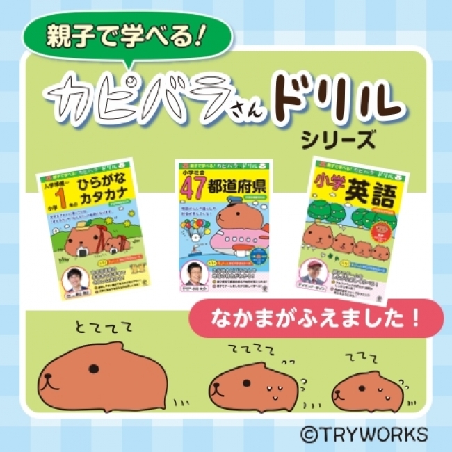 株式会社かんき出版(本社:千代田区 代表取締役社長:齊藤龍男)は、『親子で学べる! カピバラさんドリル 入学準備~小学1年のひらがな・カタカナ』(青山浩之/監修)、『親子で学べる! カピバラさんドリル 小学社会47都道府県』(小川大介/監修)、『親子で学べる! カピバラさんドリル 小学英語』(デイビッド・セイン/著)を2017年6月19日より全国の書店・オンライン書店等(一部除く)で発売いたします。