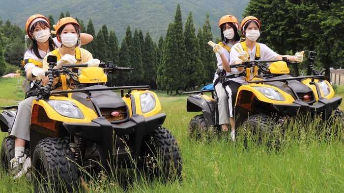 ゆみりん(瀧野由美子)・ほのたん(矢野帆夏)・ここあ(甲斐心愛)・沖ちゃん(沖侑果)は、バギーに挑戦!絶景を楽しみながら爽快に突き進みます。