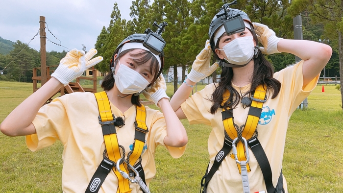 一方、ふう(薮下楓)・そらは(信濃宙花)は、ワイヤーロープに沿って、大自然の中を滑走するジップラインにチャレンジ!