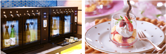 左:米どころ、酒どころ・新潟。地元村上市の酒蔵はもちろん、新潟県各地の蔵元から厳選した日本酒を利き酒でお楽しみいただけます。(5種類1,100円)お造りや寿司にはもちろん、さらりとした飲み口で華やかな香りの吟醸酒は洋食メニューにもぴったり。