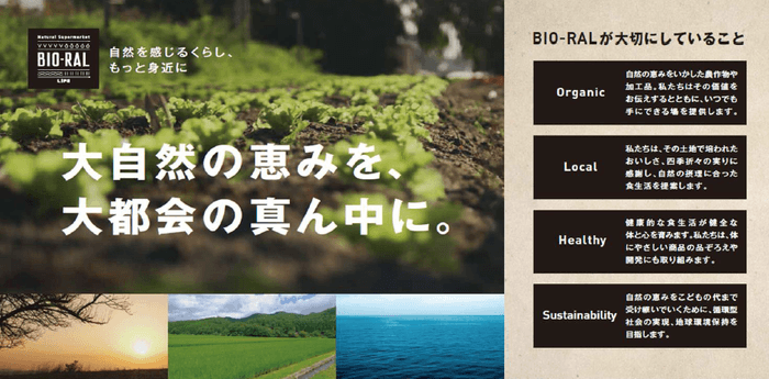 健康や環境意識の高まりからオーガニック市場が拡大しており、「人々の健康な暮らしを支えるとともに、地球環境にやさしいサスティナブルな世の中の実現」を目指すべくビオラル事業を展開しております。「ビオラル新宿マルイ店」でも、自然をもっと身近に感じていただける暮らしを支えるべく、ワクワク感のあるこだわり商品とサービスをご提供いたします。