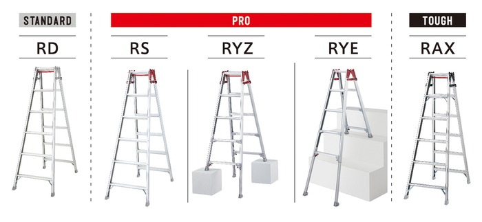 シリーズ毎に分けたカラーリングで製品選びをナビゲート、使用頻度や環境に分けて大きく3つのシリーズに脚立を分類しました。