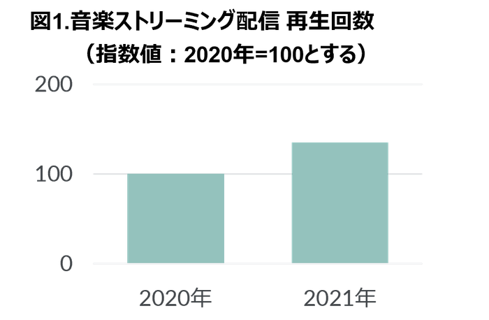 ・2021年の音楽ストリーミング配信の再生回数は前年の1.3倍以上に拡大