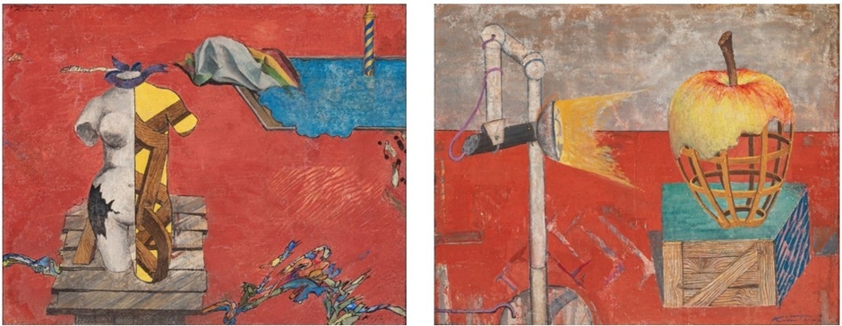 LA MELA VXIII りんご回り舞台 1972年 F30号(左)/回り舞台 1973年 F40号(右)