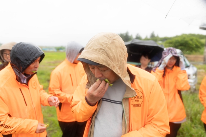 5月20日、仙台市若林区にある山田農園さんへ株式会社⼀の坊(本社/宮城県仙台市 代表取締役 髙橋 弘行/タカハシ ヒロユキ)の総料理長と一の坊グループの料理長とスタッフがソト活に行ってきました。