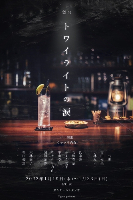 株式会社T-gene(代表:田中一成)主催による、舞台「トワイライトの涙」が2022年1月19日 (水) ~2022年1月23日 (日)にサンモールスタジオ(東京都新宿区)にて上演されます。チケットはカンフェティ(運営:ロングランプランニング株式会社、東京都新宿区、代表取締役:榑松 ⼤剛)にて12月8日(水)より発売開始です。
