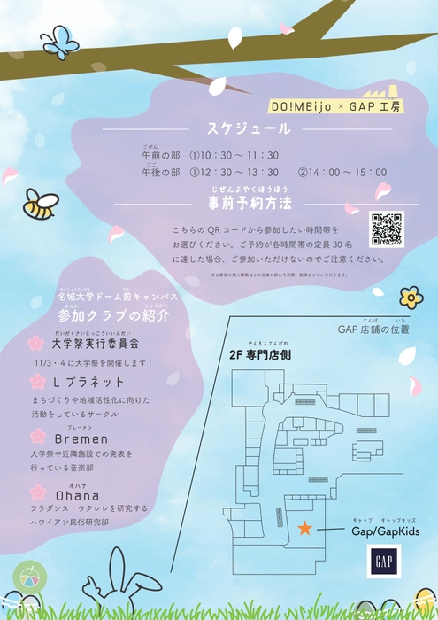 今回は以下記載のとおり『桜まつり』と題し、縁日企画やステージ企画、また、GAPストア イオンモールナゴヤドーム前店とのコラボレーション企画を実施します。皆様のご参加をお待ちしています。