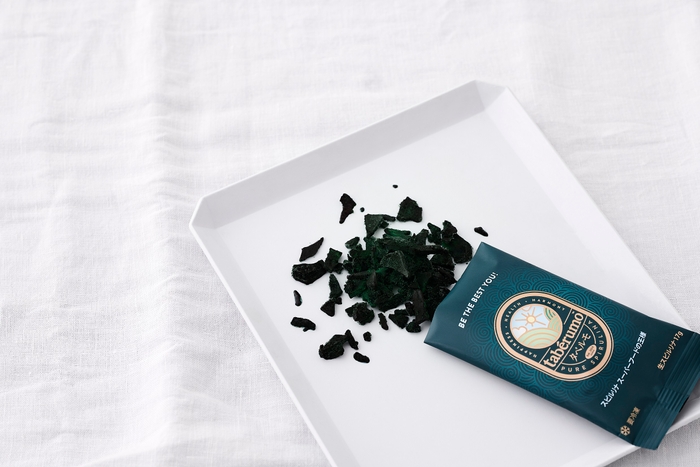 「スピルリナ」とは藻類の一種で、約35億年前に誕生した地球最古の植物とされます。「タベルモ」は生の状態で製品化した、国内で唯一の生スピルリナです。海外を中心に「スーパーフードの王様」と呼ばれ、ビタミン・ミネラル・たんぱく質などの5大栄養素をはじめ、 60 種類以上の栄養素を含む栄養価に優れた食品です。また、人口増加に伴い、早ければ2030年に世界中でたんぱく質不足が起きることが懸念されています。スピルリナは単位面積あたりのたんぱく質生産性が大豆の20 倍以上と高く、未来のたんぱく質不足への対応(食糧危機対策)が期待できる「持続可能性の高い食糧」として、世界的にも期待されています。
