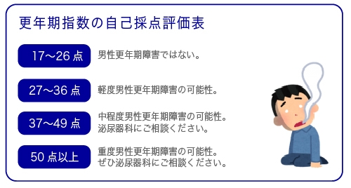 ※ 女性は婦人科、男性は泌尿器科で更年期障害かどうか?を調べることができます。
