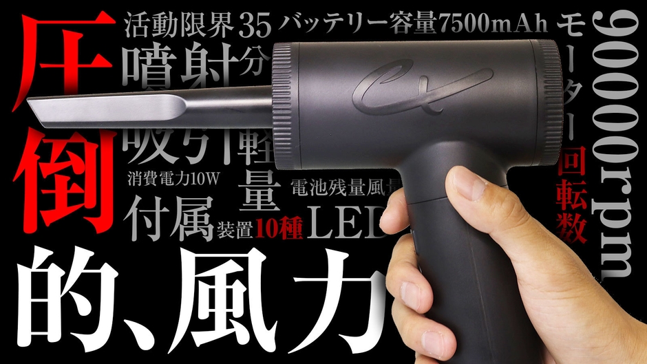 本商品は、超強力噴射・強力吸引可能なハンディークリーナーです。アタッチメントの使い方次第で何通りもの使い方が可能なため、幅広いシチュエーションで活躍します。毎日使う車やPC周りの掃除に使用する電動エアダスター・ハンディー掃除機としてや、衣類の収納や食べ物の密封保存のために使用する吸引器、焚火や風船・浮き輪などのアウトドアレジャーでのブロワーとしてもご使用可能です。