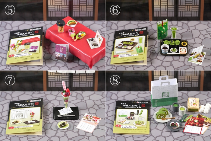 この度、伊藤久右衛門がフィギュアになりました。宇治抹茶スイーツや茶房メニューだけでなく、床几や野点傘、暖簾など、実際の店舗で使用している道具類も再現しております。内容は全8種類。箱買い特典には、伊藤久右衛門実店舗の外観を再現した、暖簾を飾ることのできるシートが付属いたします。あなたのお部屋に、京都・宇治のお茶屋を構えてみませんか。