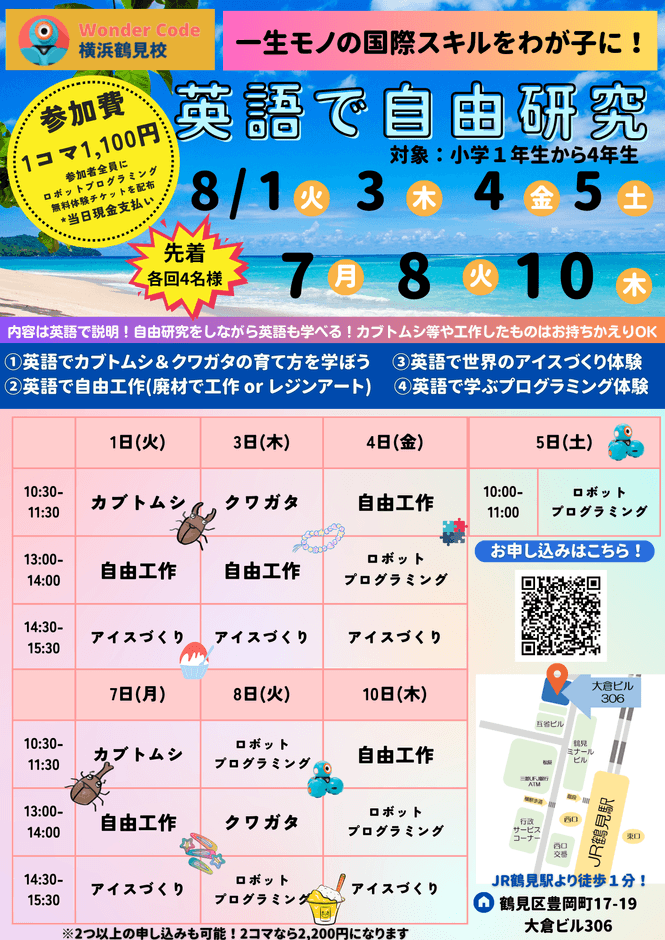 横浜市鶴見区のワンダーコード横浜鶴見校が 「夏休みの自由研究大作戦」を8月1日~10日に “英語で”開催!お申し込み受付中