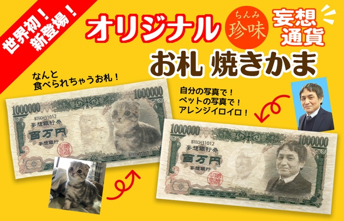 ビーテック株式会社(本社:千葉県、代表取締役:石原 康次)は、2018年3月、珍味でできた百万円札「妄想通貨」の販売を開始しました。