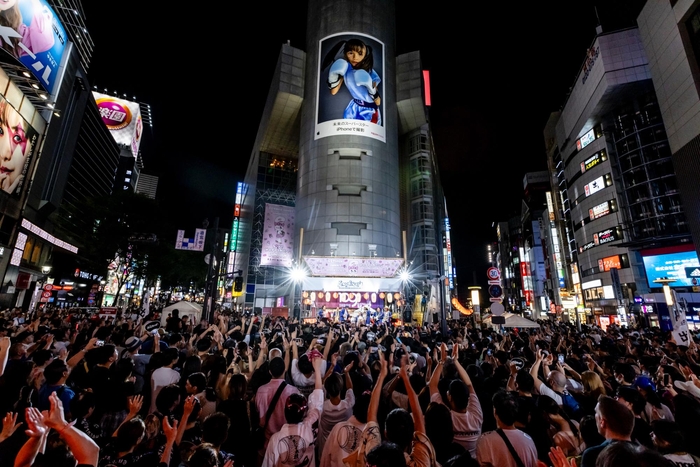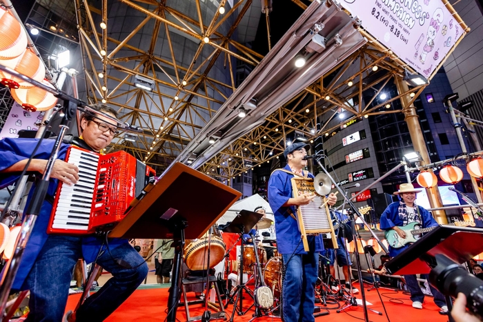 サプライズ登場のBEGINは集まった観客から大歓声で迎えられ、盆踊りの定番曲「東京音頭」からライブスタート。盆マルシャメドレーで会場の熱気も最高潮になったところで、“渋谷”の盆踊りの定番曲になることを願って書き下ろされたという新曲『渋谷百年総踊り』を初披露した。<踊れ弥栄(いやさか) 集えや谷へ 渋谷百年総踊り>と歌い上げ、集まった聴衆と共に感動的な空間を作り上げ、老若男女をまさしく“総”踊りさせた。