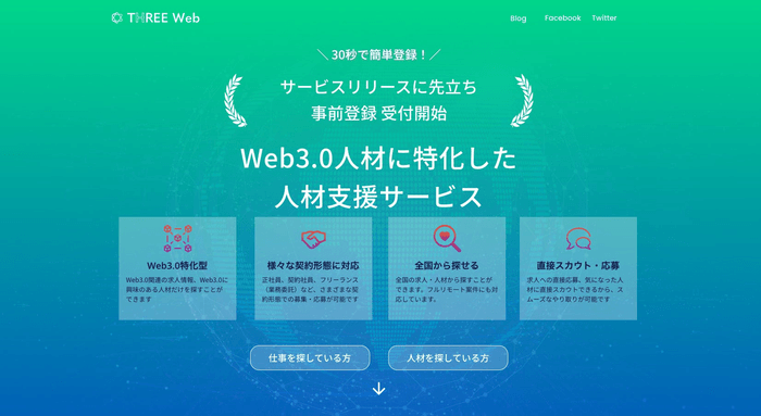 Web3.0特化求人サービス「Three Web」の事前登録開始(事前登録特典あり)