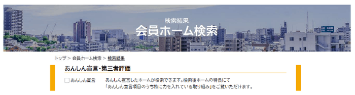 あんしん宣言したホームは、有料老人ホーム協会の「個人のお客様・消費者向けサイト」で検索してください。