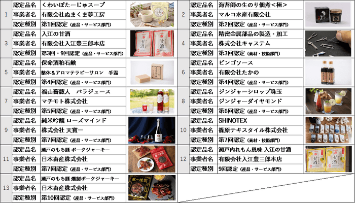 福山ブランドコーナーに出展する認定品一覧(予定)