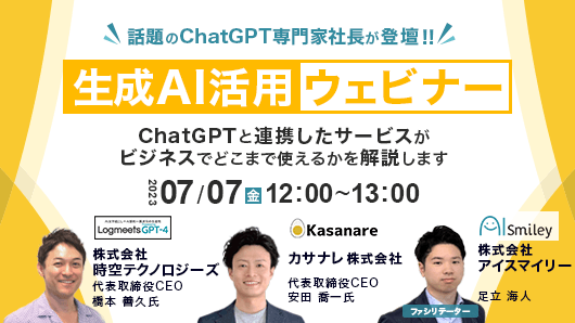 【生成AI活用ウェビナー】話題のChatGPT専門家社長が登壇! ~ChatGPTと連携したサービスがビジネスでどこまで使えるかを解説します~
