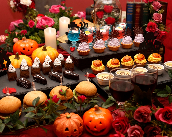 期間中はコスプレでの入場も可能でハロウィンをイメージした可愛いドルチェを中心に野獣をイメージしたビーストバーガーや秋の味覚を使用した多彩な料理も登場。お肉やピザなど軽食も含め、約20種類をご用意いたします。この秋限定の新作デザートをお好きなだけお楽しみください。