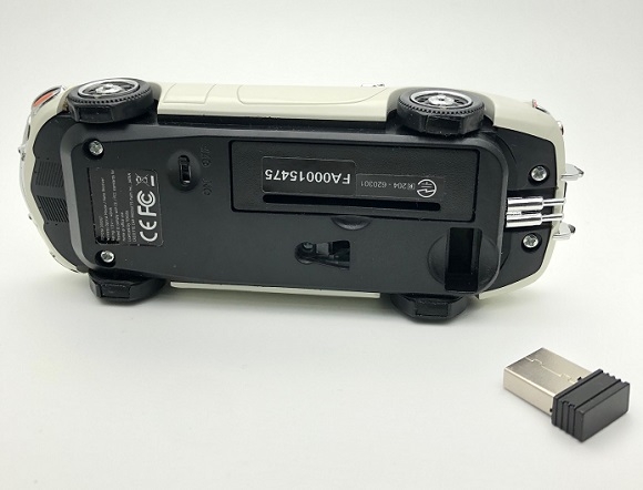 車体の裏にナノレシーバーが差し込んであります。レシーバーをパソコンに差し込むだけで