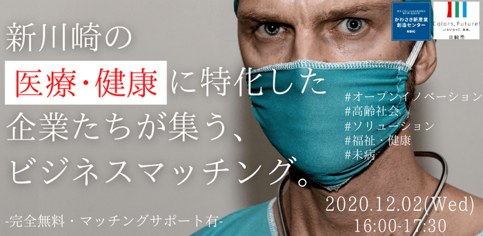 ものづくりベンチャー企業が研究開発拠点として集積しているかわさき新産業創造センター(所在地:神奈川県川崎市 以下、KBIC)は、12月2日(水)にマッチングを目的とした無料オンラインイベント「新川崎の医療・健康に特化した企業たちが集う、ビジネスマッチング。」を開催します。KBICに入居しているヘルスケア分野に精通している企業6社がピッチします。