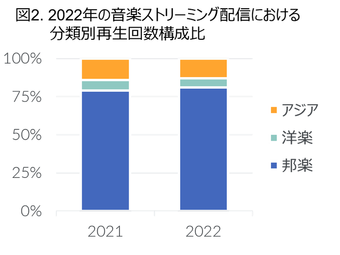 ・前年に続き邦楽が市場をけん引し、分類別再生回数の構成比では8割超え