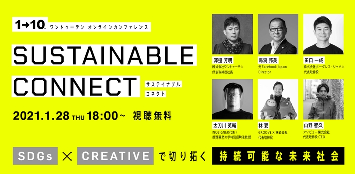 近未来クリエイティブ集団『ワントゥーテン』主催 オンラインカンファレンス 「SUSTAINABLE CONNECT」 1月28日開催決定、本日より無料事前登録スタート!