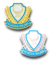 ベースを仕上げた爽やかな白やブルーの配色と、文字入りのリボンや盾がかたどられた仕様を統一し、メッキの種類を金とニッケルで差別化した2種類の「JGCピンズ」は、社団法人東入間青年会議所様が会員の方々で構成する「じゃがいもゴルフ倶楽部」のオーダーメイドアイテム。目的は所属メンバーに景品として手渡される仲間同士の目印とも言えるオリジナルグッズです。