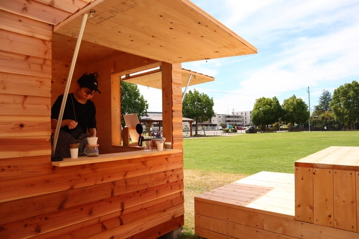 「カリマチ会議」は「刈谷のまちを楽しくする」ことを目指す市民による会議で、佐藤研究室の学生たちも参画。昨年度は、刈谷駅前の木材倉庫に眠る端材や在庫木材を家具のように並べるストリートファニチャーを置き、「カリマチラボ」というイベントを開催。2年目となる今年度は、刈谷市役所に隣接する大手公園に市民などがベンチに座ってのんびり過ごすことができ、市民らが自由に物販等をできる出店支援ボックスを設置。佐藤研究室の学生が刈谷市内の建築設計事務所「1-1 Architects」と共にデザインをしました。