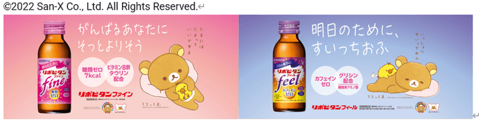 本リニューアルを盛り上げるべく、人気キャラクター“リラックマ”が7月からの期間限定でリポビタンファイン・リポビタンフィールとコラボレーションすることが決定いたしました。リポビタンは生活者それぞれの歩幅に合ったがんばり方に寄り添い、背中を押す存在でありたいと考えており、リラックマの発信する「自分らしさを大切にすること」というメッセージを通してその形を体現します。本期間中には、10本箱を購入いただいた方への限定特典(販売店舗、数量限定)を準備しています。この機会にぜひリポビタンファイン・リポビタンフィールとリラックマの特別なタイアップをお楽しみください。
