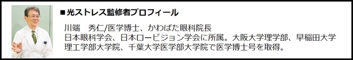 「紫外線、ブルーライト、まぶしさ」は、私たちの日々の生活のストレスとなりえます。特に夏の強い日差しは、光ストレスを強く感じさせます。これをかわばた眼科院長川端秀仁氏監修のもと「光ストレス」※図1と名付けました。