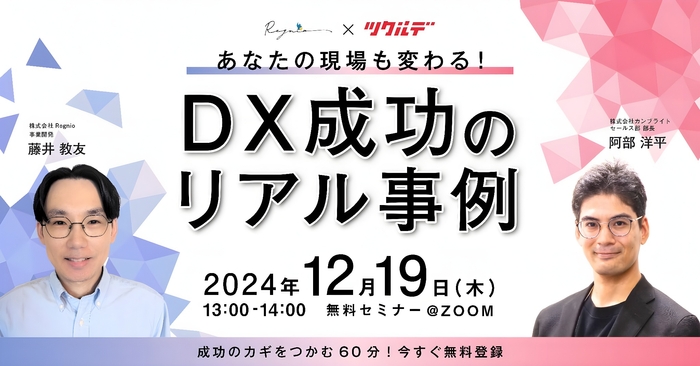 株式会社リグニオ(本社:福岡県、代表取締役:中野雅俊)と株式会社カンブライト(本社:大阪府、代表取締役:井上和馬)は、2024年12月19日(木)に「成功事例を通じてDXの秘訣を学べる60分ウェビナー」を共催します。本ウェビナーでは、実際の導入企業の成功事例を中心に、現場での効率化、品質向上、コスト削減を実現するための実践的なノウハウをお届けします。